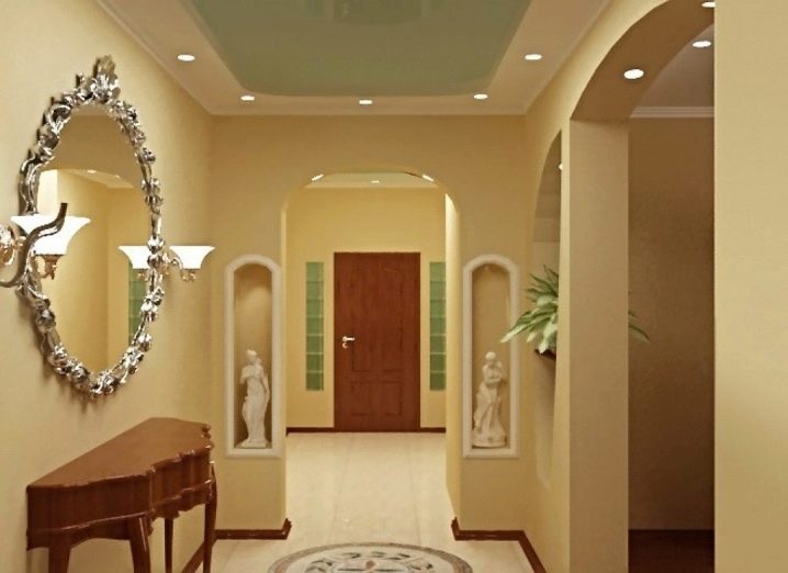 The ceiling, arches, partitions, niches for statues - the entire interior of the hallway is made with the help of drywall.
