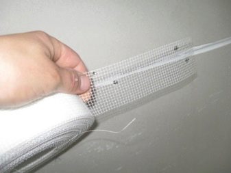 After drying, it is necessary to glue everything - both longitudinal and transverse seams of serpyanky. Serpyanka is a self-adhesive fiberglass mesh. It has a different width. In this case, strips 10 centimeters wide are used. Although the mesh is self-adhesive, it should be pressed down well to the surface. And Serpyanka afraid of drafts, and under the air flow quickly disappears.