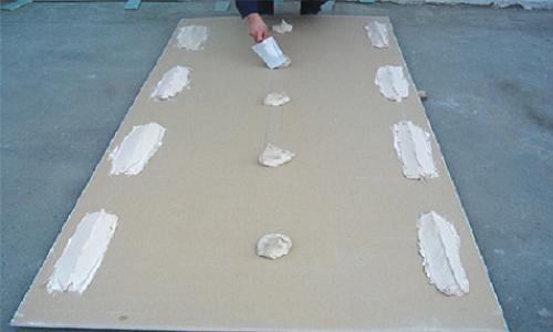 - Glue is applied point. The diameter of the "point" - 1.5 centimeters. The distance between such "points" is about 30 centimeters. For major flaws, PerlFlix glue is used. Just as in the first case, the glue is applied around the perimeter and center, it is possible diagonally.