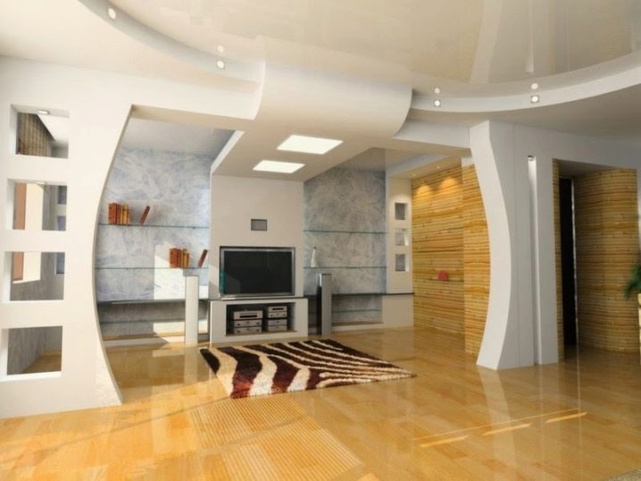 For physical and hygienic properties, it is excellent for residential use. It can be used to decorate the premises of apartment buildings, private buildings, industrial facilities. Its properties allow you to make different shapes out of it, thereby decorating the surfaces of walls and ceilings. In addition to the arches of drywall, you can cut a variety of shapes.For example, in addition to geometric shapes, it is possible to cut out individual flowers, butterflies, and abstract motifs, decorating the ceiling space with them.