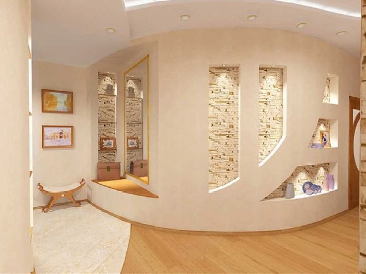 It is convenient to combine drywall with other materials, creating arches, a variety of functional and decorative designs.