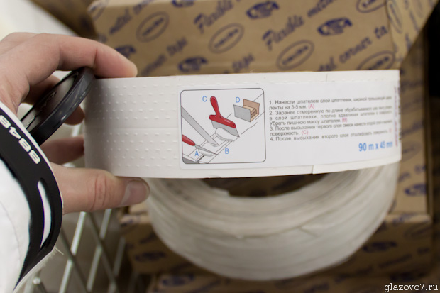The reinforcing tape is applied on the level working grounds, internal and external corners.