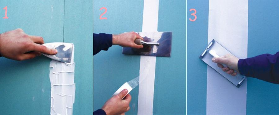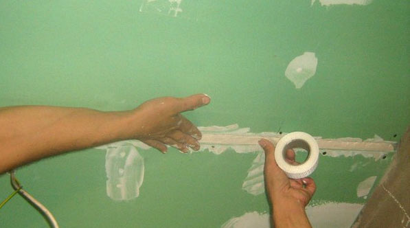 - putty - the most popular solution, allows simultaneous sealing of seams and fixing tape.