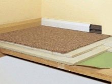 - If the main floor is complex and uneven, then sometimes you have to put not two, but three layers of GVL-plates. However, in this situation, you need to think about the additional installation of the lag, because the floor will become much harder.