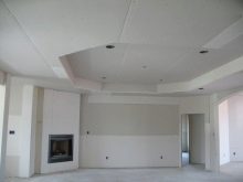 - It is much more difficult to bend gypsum-colored slabs, than drywall, so the interior with bends and indirect lines is better to perform from drywall.