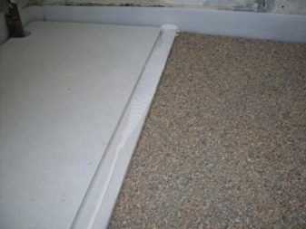 - Install the waterproofing material. The first layer is dense polyethylene, glassine or tol (the material must be selected depending on the purpose of the room and remember that this layer serves as a vapor barrier). Polyethylene or other material overlap, and glue the edges of the mounting tape. Waterproofing is placed so that its edges went on the walls (making a kind of bowl) above the waterproofing level marks. The edges of the film must also be glued to the wall. The second layer - insulation / waterproofing. Many masters give preference to expanded clay, as it has good performance characteristics. Wooden or reinforced concrete base stack layer of waterproofing material.