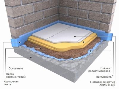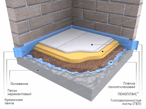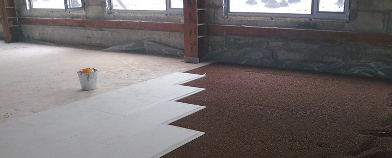 - If your room needs additional sound insulation, then use foam polystyrene sheets for this, laying them between expanded clay and GFL slabs.