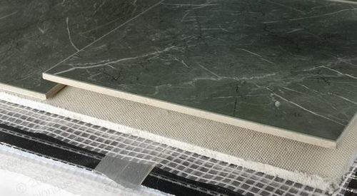 - Tile glue, which you will put on GVL-sheets, dries very quickly. Do not immediately coat the entire surface!