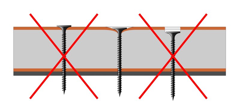 - the screw head “sinks” about 1 mm into the sheet, while it is important to ensure that the screws enter the material at a right angle, and the fixing step should not be less than 25 cm;