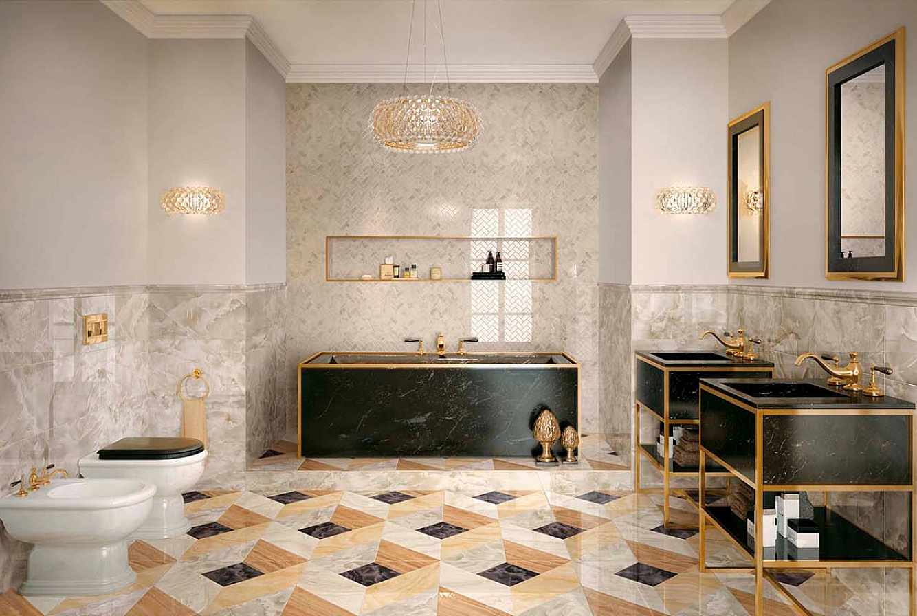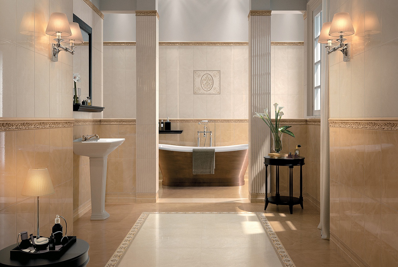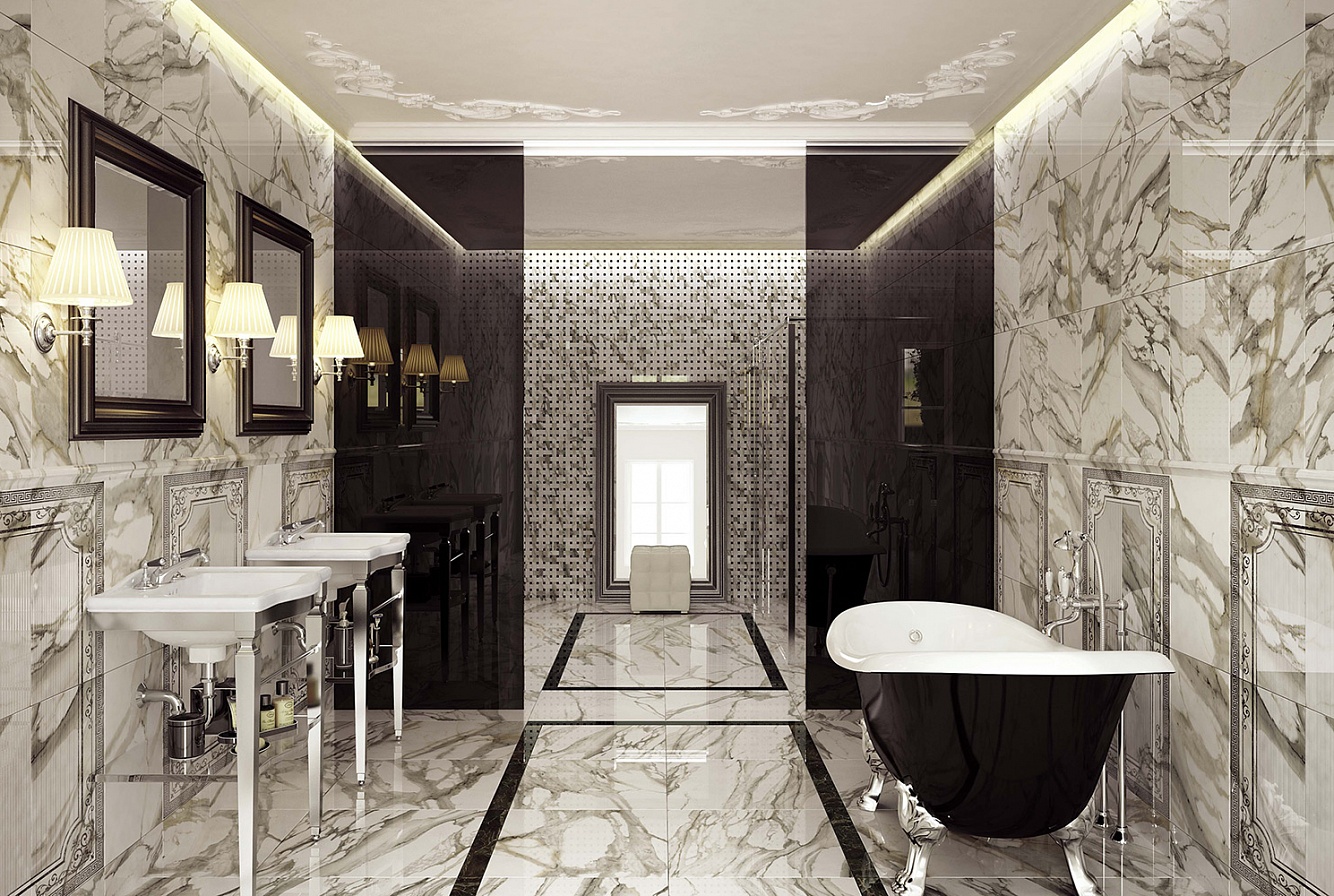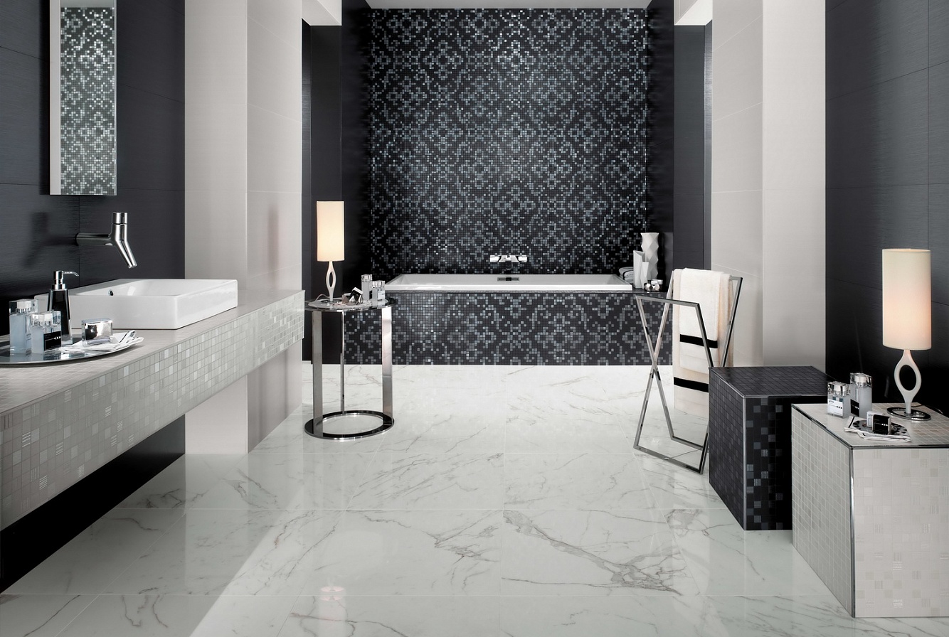White color looks especially elegant. It visually expands the space, goes well with a variety of decors and other colors. Marble coatings are very appropriate when finishing various public institutions. If you like wood texture, Atlas Concorde will provide you with a wide selection.