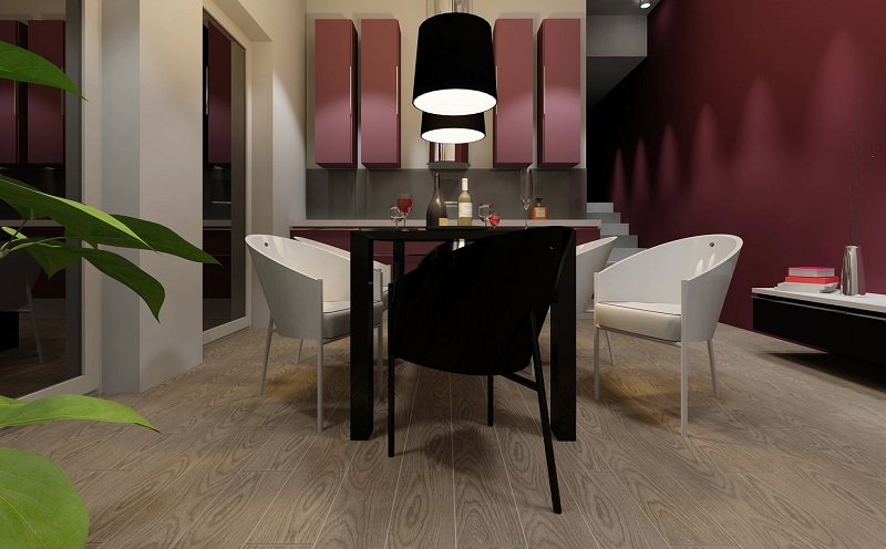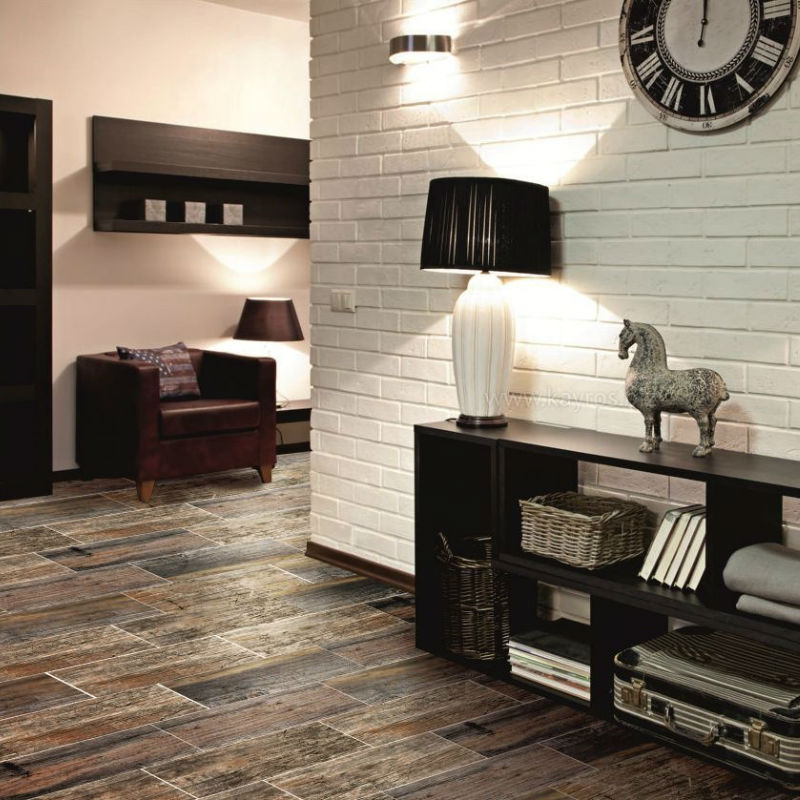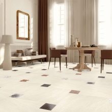 Since natural wood is quite expensive and does not tolerate moisture, it has a lower lifespan, and many prefer ceramic granite,imitating wood material. So, porcelain tile can imitate a wooden floor, parquet tiles and even small piece parquet. Moreover, the material will be completely indistinguishable from the original coating. When walking on it will be noticeable that such a floor is colder. In order to eliminate this disadvantage, porcelain stoneware is often laid on heated floors.