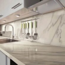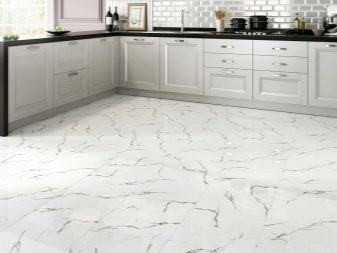 Porcelain tile is used not only for finishing the floor, but also for the walls. So, they can lay out all the free space on the balcony, using any technique. They can also beautifully arrange the kitchen. Especially popular is the combination of a kitchen apron made of glossy porcelain stoneware with similar tiles on the floor. With porcelain stoneware, worktops in the working area of the kitchen are trimmed and the apron area is faced in the same way. This harmonious combination looks both stylish and practical.