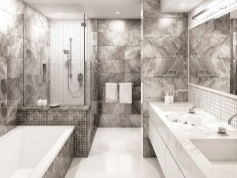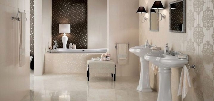For finishing of a bathroom blue, blue and white porcelain tile enjoys special popularity. But the specific color solution for the surface finish depends on the color scheme of the interior and on its stylistic design. It should also be borne in mind that if you give preference to bright coatings, they should overlap with other details that are available in the interior.