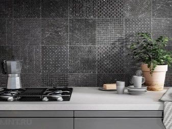 Now you can find almost any color solutions that are manufacturers. In modern interiors it is popular to use black glossy porcelain stoneware. It is great for high-tech or techno. It can look exquisitely both in the kitchen and in the room. They even finish the working area of the kitchen: an apron and countertop, designed for cooking.