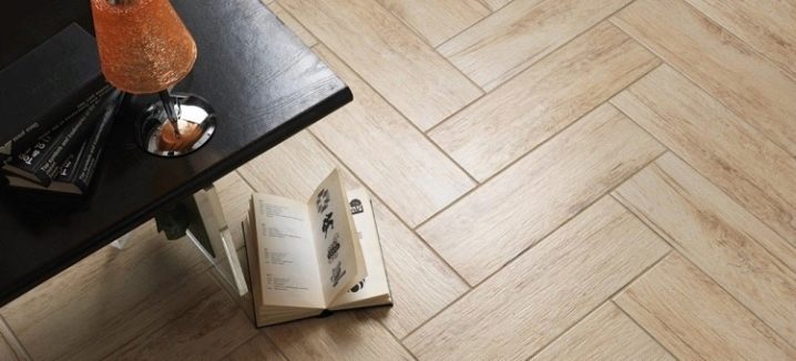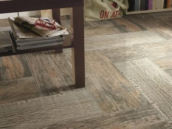 A more complicated way is a ceramic granite tile for wood with “wicker” laying. To do this, use tiles of different colors and textures.In this case, the material is laid in such a way that it constitutes a pattern similar to basket weaving. It is very difficult to lay porcelain stoneware in this way by yourself - for this, they hire craftsmen. However, the result is worthwhile.