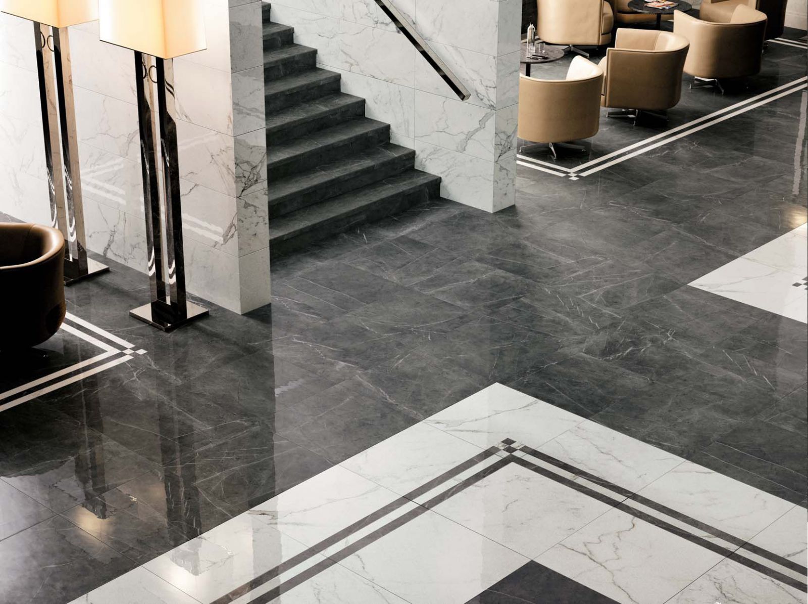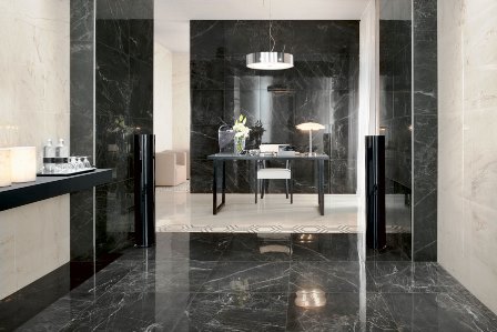 Lappatirovanny porcelain tile is suitable for walls and floors. On the floors of this material is placed in rooms with high traffic. Suitable for offices and shopping centers.