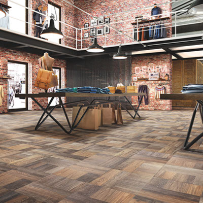 The next version of woodgrain coating is porcelain stoneware with “Vietnamese” design. It is a floor made up of squares of several porcelain tiles. Each adjacent square differs from the nearest one in another direction.