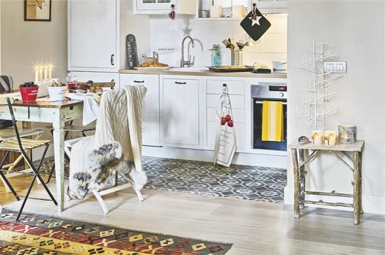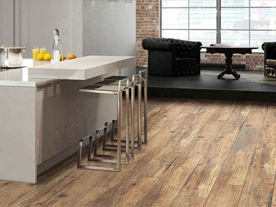Such floors are also often laid in the kitchen. or in case the kitchen is combined with the living room. This solution is also suitable for a studio apartment. At the same time, ceramic granite tiles are used under the laminate and are combined with natural laminate: the kitchen area is usually finished with ceramic granite, and the living room and dining area is covered with a conventional laminate coating.