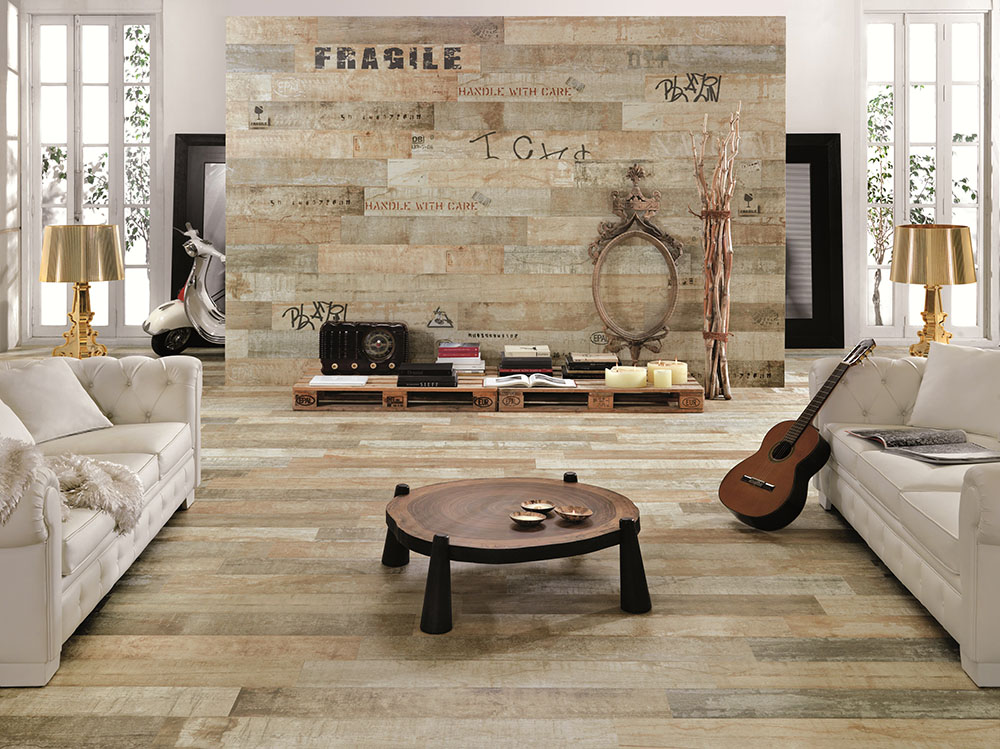 In the classical interiors are often used porcelain, having artificially aged textures. Outwardly, it is almost indistinguishable from the tree, including by touch. Moreover, manufacturers are and rough and polished models.