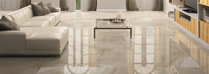 Polished porcelain stoneware after laying also must be necessarily treated with a sealant that will clog the pores on the surface of this coating. So, a special sealant is applied with a wide brush and is left to be completely absorbed.This procedure needs to be done one-time, but ongoing care is a simpler process.