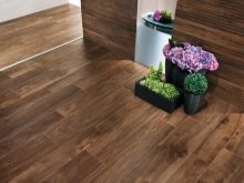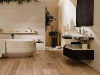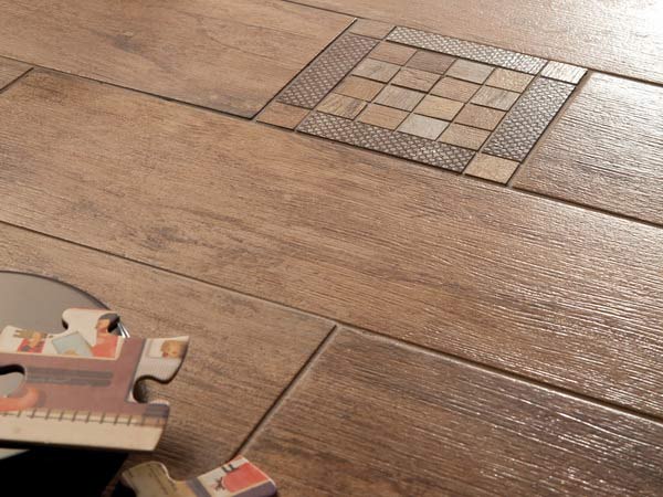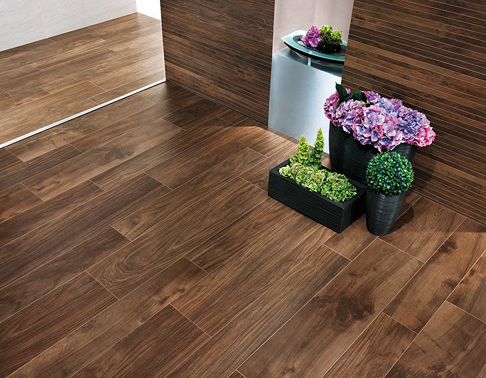 Many manufacturers use a thin layer of natural wood for laminating porcelain tiles, such types are no worse than wood flooring, high-quality laminate or noble parquet.
