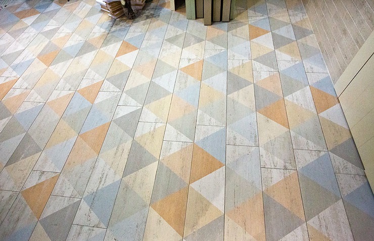 - The original combination of parquet and mosaic of small different elements. At first glance, I can’t even believe that it is a porcelain stoneware floor.