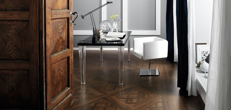 Products made under wooden parquet, able to emphasize the chic decor in the interior. If earlier this method of finishing was traditional and was used everywhere, now the parquet flooring made of natural wood is rather an elite type. It was replaced by cheaper and faster ways of finishing the floor: linoleum, laminate, painted flooring. Laying porcelain tiles imitating parquet, can cost less than the original, and it will last longer.