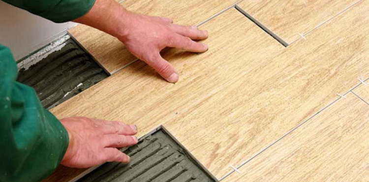 After facing the room with ceramic granite tiles under a tree, you must wait a certain time until the glue dries, then proceed to grout the joints. It occurs with the help of a special jointing solution. On sale there are various colors of the fugue, including under the selected wood color. And you can always buy a colorless version by adding one of the many dyes to it. It is best to rub with a small rubber spatula, then wipe the tiles with a damp cloth.