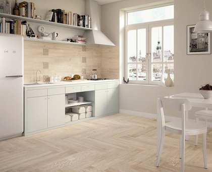 Belarusian manufacturer "Berezakeramika" produces a wonderful floor tile with wood texture. It is possible to note the light coating "white oak" with a matte surface, transmitting the atmosphere of natural material.