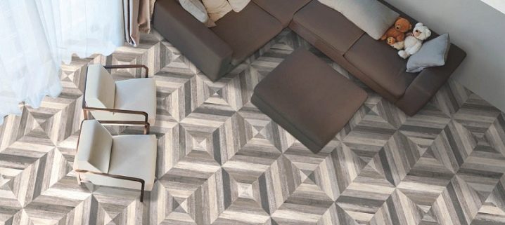 When designing the flooring with porcelain stoneware, be sure to consider the dimensions of the stacked tiles. Proceeding from them and the area of the room, it is necessary to take into account the consumption of material and possible drawing.