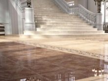 - Polished. Such a product is polished to a perfect shine. This type is most often used in exhibition halls, cathedrals, restaurants, and other similar institutions.