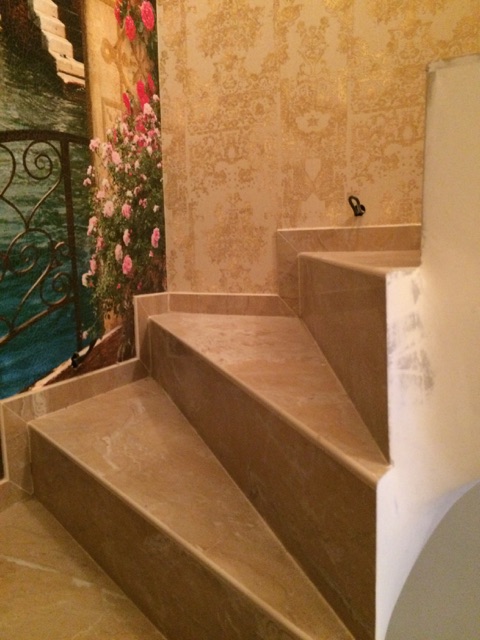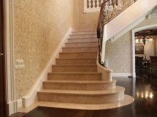 For stair steps you can use marble, which has white inclusions. To him you need to find a beautiful baseboard.