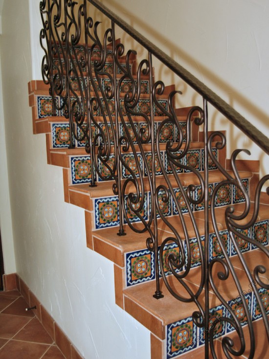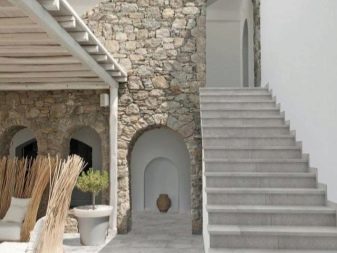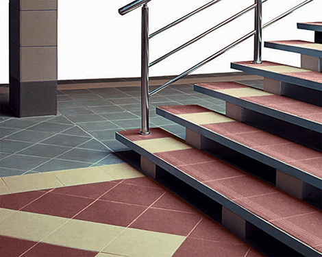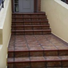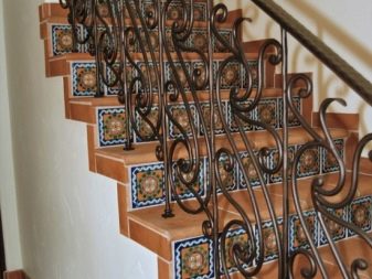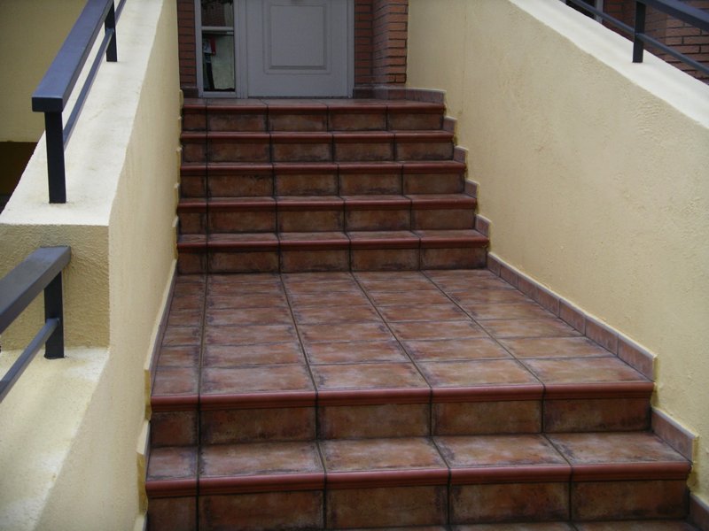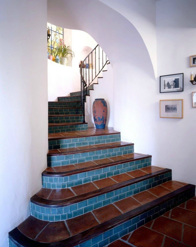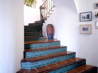 It assumes standard stacking in the profile: vertically and horizontally.Laying is performed parallel to the railing. In this case, it is better to choose colors neutral or from one palette. Rectangular stoneware is often used during sticking.