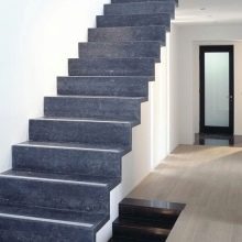 The porcelain stoneware staircase looks very elegant. In combination with her wrought iron railings look even more elegant.