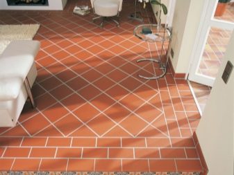 The laying of porcelain stoneware is performed with accurate marking of the diagonal axes. The ideal option for such a coating is monochromatic or contrasting stoneware tiles.