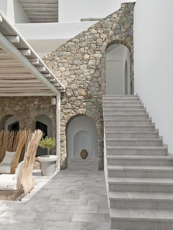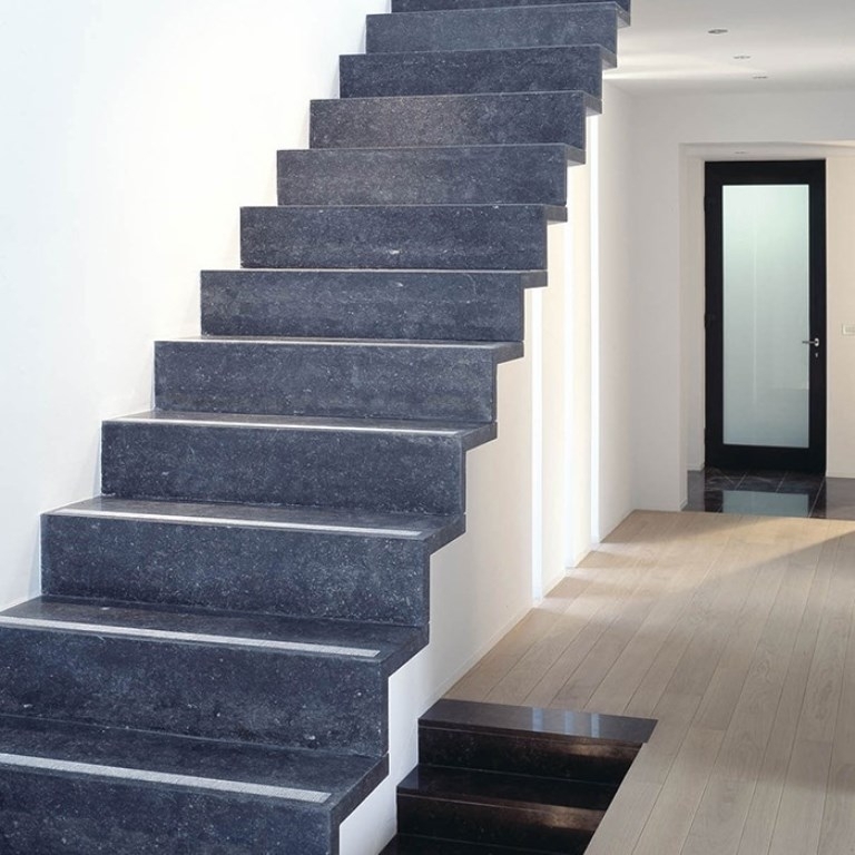 The structured steps resemble a raw stone. Their surface has a roughness and therefore does not slip at all.