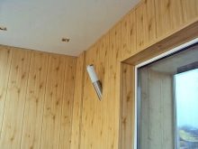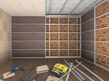 The frame can be made of wooden beams or galvanized profile. Each option has positive and negative features. Wooden construction does not need a large number of fasteners, it can be attached with screws, in addition, the raw material has similar characteristics in terms of moisture absorption, as the finishing material itself.