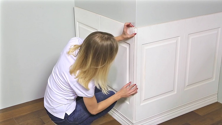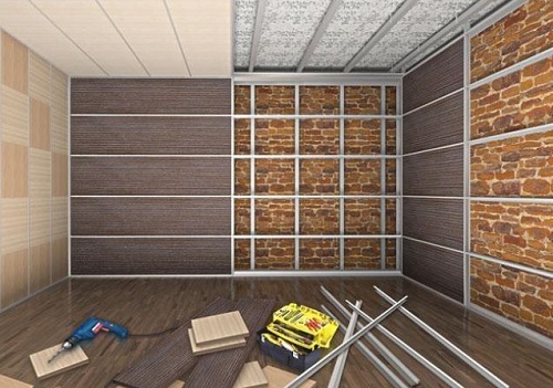Rack type panels are cut according to the height of the walls, the corners are cut off, the edge is processed by sandpaper.
