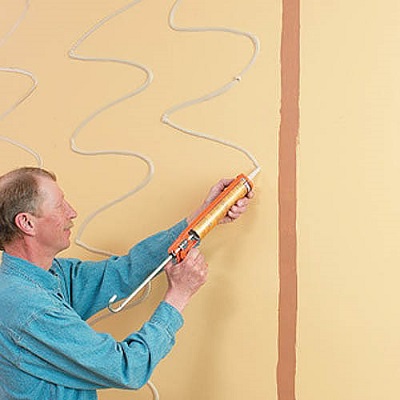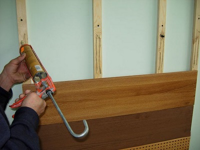 - for high-quality sizing, the adhesive composition is applied on the reverse side of the product in a zigzag, after which the element is pressed against the wall and immediately removed;