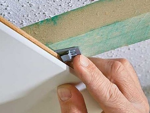 - Fixing elements with clamps - the essence of the installation consists in putting the clip on the edge of the rail and connecting it to the frame with nails. This method is most in demand.
