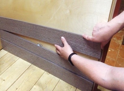 - The first plank is set in such a position that its edge with the ridge is directed into the corner. Next, the panels are fastened to the frame guides, a clamp is put on the edge.