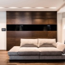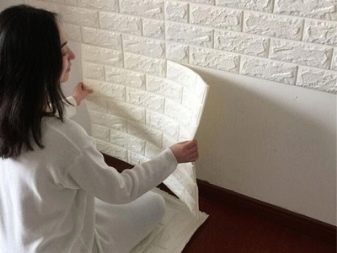 - Sheet panels. These are panels that have a width of up to 203 cm, and the length of the plate reaches 405 cm. Typically, these plates are made of polyvinyl chloride foam, some manufacturers additionally treat the surface with special compounds, making the plates more durable and wear-resistant. Sheets are laid on the walls with liquid nails or special glue, and all the gaps are masked with a rail or colored sealant.