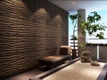 According to the type of coating panels for walls can be mirrored, marble, "under the wood", "under the brick", reminiscent of wallpaper. In addition, they are openwork, embossed, fluorescent. In recent years, panels with a 3D effect, which imitate the relief of natural stone or brick, are very popular. Many manufacturers offer panels with photo printing.