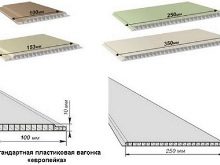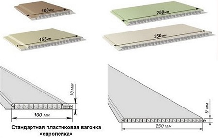 As already mentioned, depending on the size, there are several options for panels. Lining is elongated rectangular-shaped sheets, their length varies from 3 to 12 m, and the width is in the range from 0.1 to 0.5 m. The thickness of such a panel is 8-12 mm.