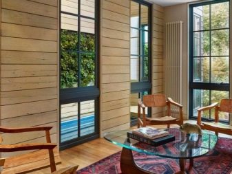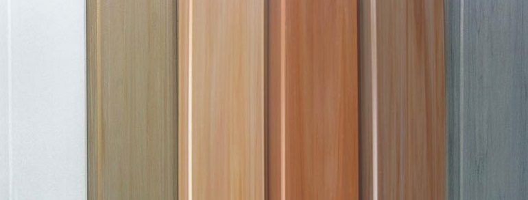 - Plastic lining. These are narrow and long panels. Similar lining is widely used for internal and front finishing works. Externally, the coating looks like something between a lining of wood and polycarbonate.