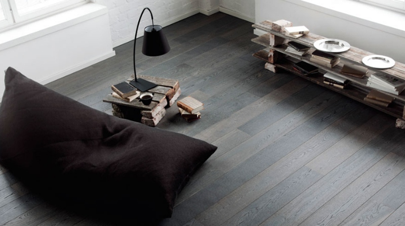 - midnight. In this collection there is an oak floor in 2 versions. Deep gray tones will give solidity. White skirting boards and light walls will ideally complement them - a very unusual contrast;