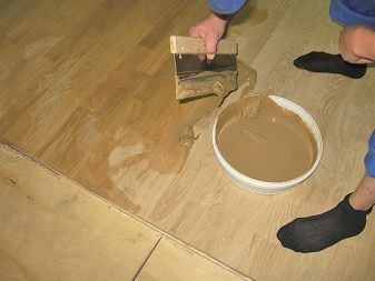 After the end of grazing, the appeared slots are smoothed with a putty and once again polished.Further, in order to finally restore the floor covering, it needs to be varnished.