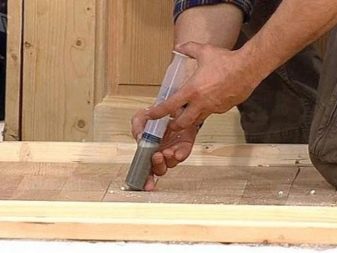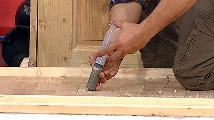 Sometimes, when parquet boards crack, noticeable gaps form between them. For sealing of such gaps is used composition based on wood glue. For its preparation, heat the glue and water, combined in a ratio of 2 to 15. Then add 5 parts of cement and 5 parts of sawdust. All components are thoroughly mixed and the resulting mixture fill the gaps. Remove excess with a spatula. After 10 days, the composition finally dries.