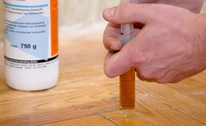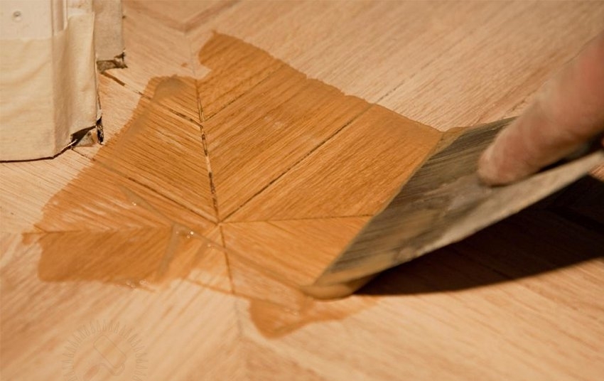 To restore the top layer of parquet flooring, you can also use a mixture of sawdust and epoxy glue. The procedure for work on the seal of defects is the same.After the restoration work, the wood panel is coated with varnish or special mastic.