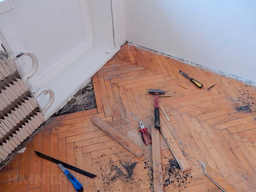 Capital restoration of the parquet flooring may also be needed if it deteriorates under the influence of moisture. This process is quite laborious. Not dried wood panels lose their insulating properties. As a result, the entire parquet is deformed and becomes unpresentable.
